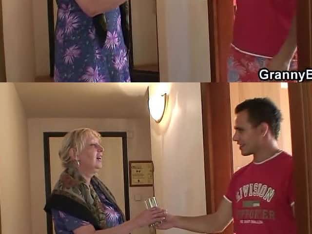 Breasty granny screws her own step grandson