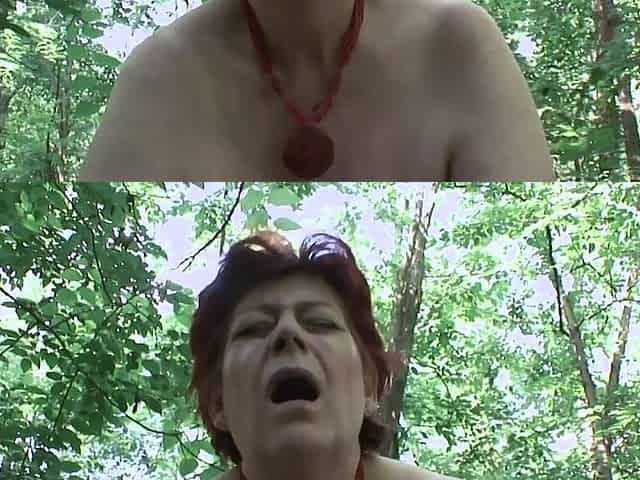 I fulfill this granny's dream with natural tits and shaved pussy of being fucked wildly outdoors