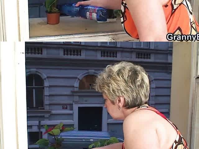 Granny, shoving pussy, big dildo