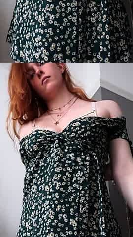 Ginger babe shows off her natural tits and shaves her pussy