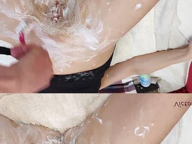 I shave my unshaved twat until smooth