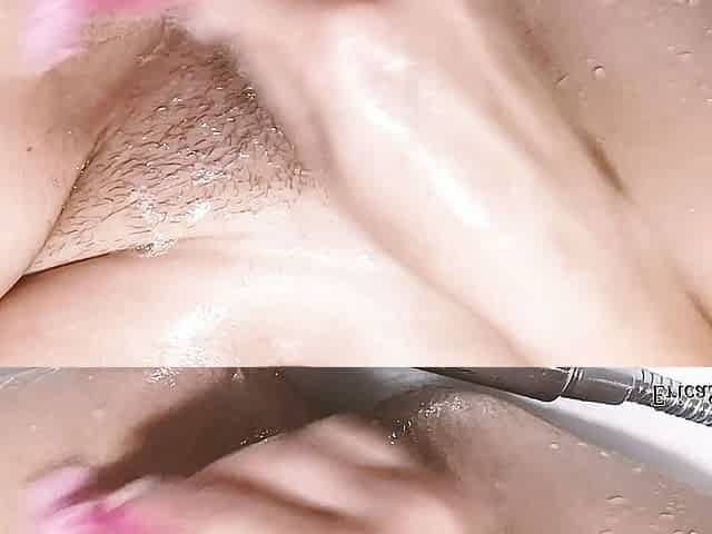 Sexy girl play pussy water jet, shaves and fingering pussy in the bath