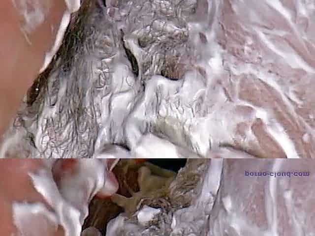 Totally shaving hairy pussy