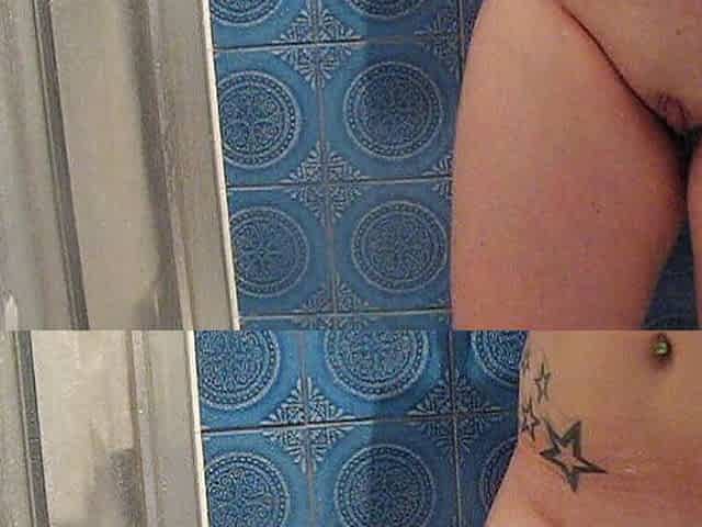 Shower chores of Julia V Earth. Bath, shaving, face cleaning.