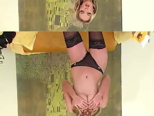 LINGERIE VIDEOS - Tall leggy blonde masturbates in stockings and panties. Long legged blonde masturbates in sheer stockings and