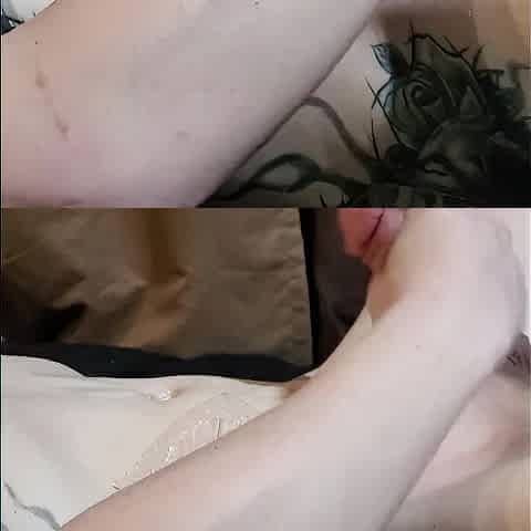 Petite femboy tugging her cock until cum