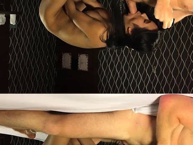 Oriental teen ladyboy with large melons sucking a white wang in advance of this guy drilled her