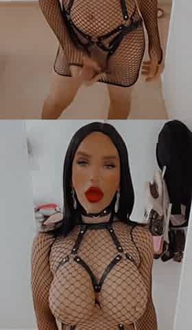 Striking Trans gal Ariel Demure has lush lips, a cute butt and a large bulge below frilly underware