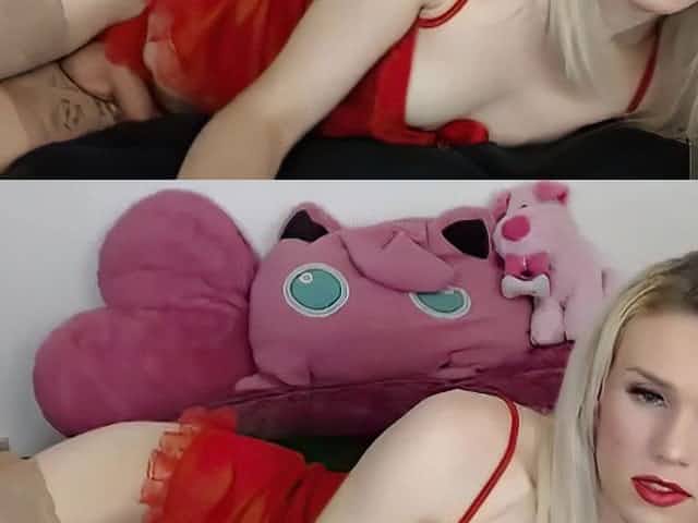 BBW shemale red lingerie cumshot Cam