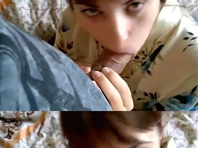 Femboy & trans girl blowjob ends in face fuck and oral creampie
