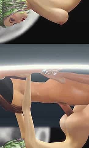 Amazing lesbian gets fucked by hot 3d dick-girl in the space station
