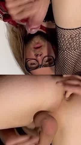 Femboys nerd fuck and cum on shemale asshole