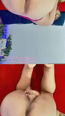 Femboy uses his thick hips to wank her sex toy and suddenly cums on her tights
