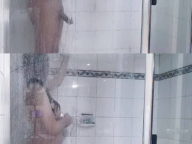 Pretty Trans Anairb masturbating and cum whilst having shower