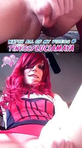 Sexy tranny Lucia Maya in chastity fucks her ass and unloads cum before blowing her load