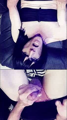 Sexy TGirl Pauline sucks Mikes huge cock until he cums in her mouth