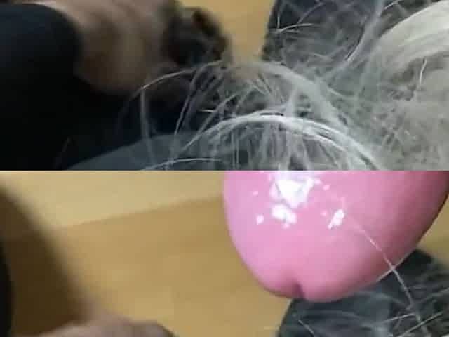Shemale spraying sperm into own mouth