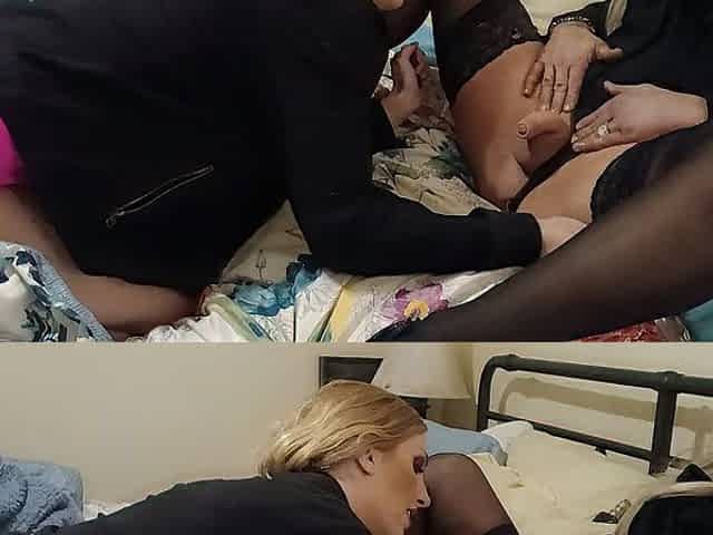 Hot Brunette suck Busty blonde shemale stiff cock