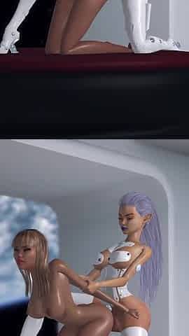 Sci-Fi room. Young girl gets fucked hard by a hot female android dickgirl in the space station