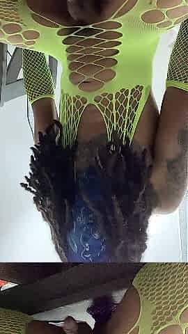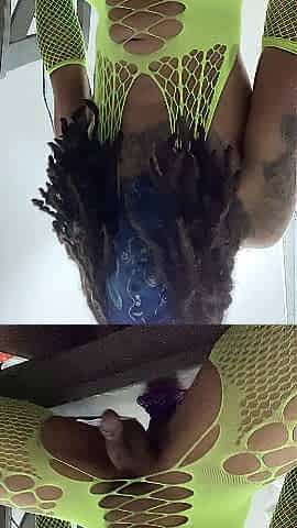 Amazing Ebony TS Hands Free Ejaculate