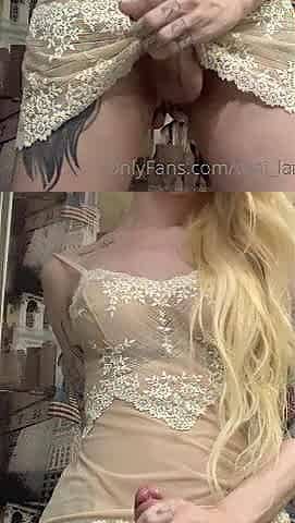 Beauty lingerie TS solo play with dildo
