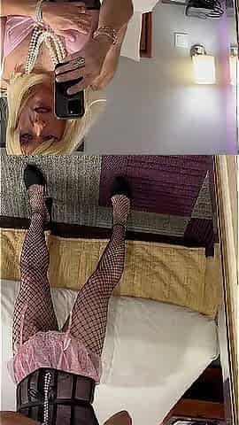 Horny blonde tranny hustler solo big cock jerking