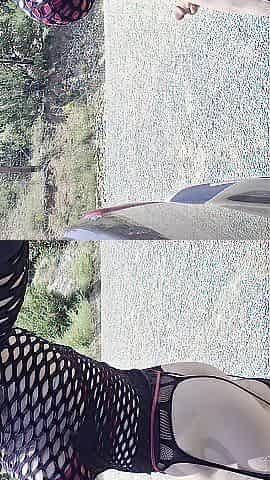 Thick trans Bonnie plays with penis and booty closeup in public