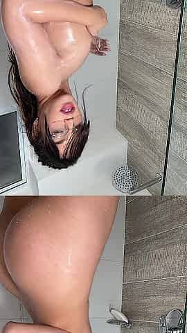 Trans hotty takes a shower to clean her penis and booty after getting screwed