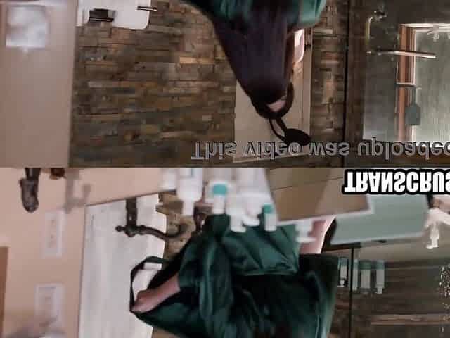 Foot fetish tranny babe fucks girlfriend with hairy pussy in bathroom