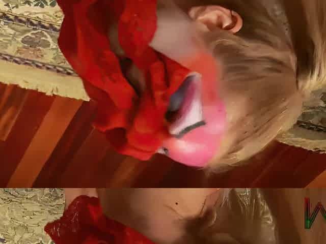 Horny tgirl Mandy masturbating & fucking with a dirty female clown