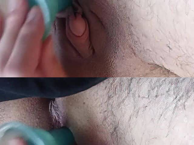 FTM Cums Powerfully when Screwing herself with a Tiny Sex-Toy
