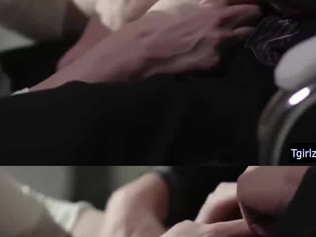 beautiful tranny Natalie Mars masturbates by a handjob on the sofa