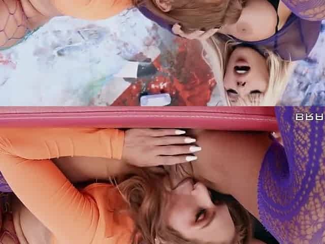 Blonde shemale Victoria fucks porn star Ava Devine balls deep