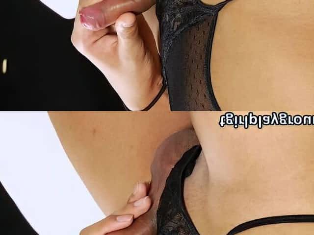 Godly brunette latina t-girl Aylla Guttina giving a hot handjob