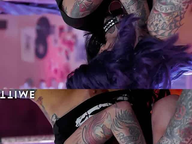 2 large titties tattooed tgirls have a fun banging every other