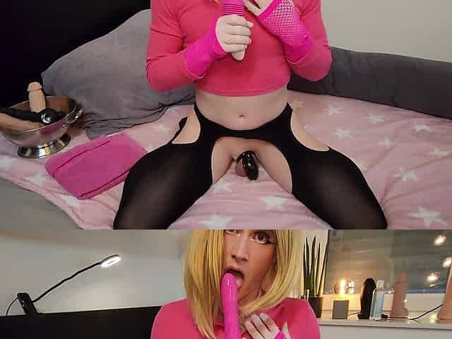 Tranny slut fucking her slut ass self facial