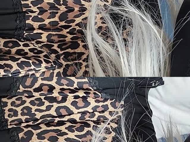 Sissy and her flowery skirt with shiny lining.