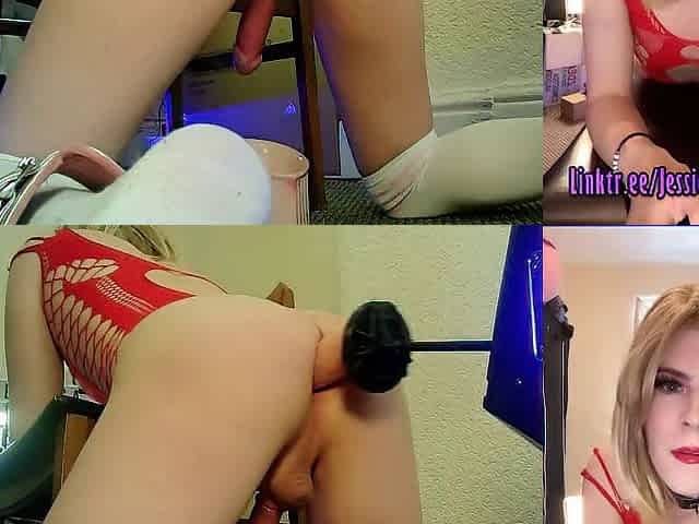 Tranny Isa Lawrence Bends Over And Lets The Machine Drill Her Ass