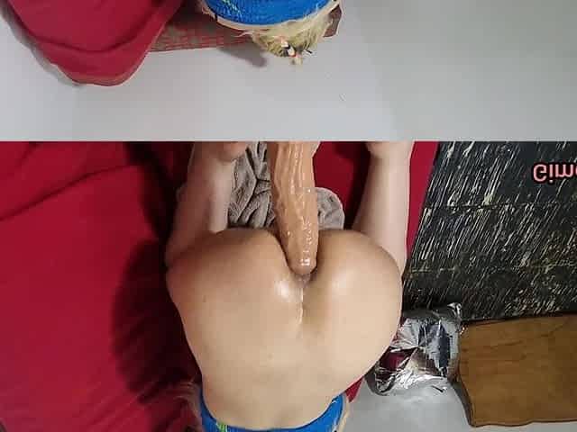 Chica trans Funkyo Enma tiene una noche de diversion con su juguete por el culo mientras se masturba