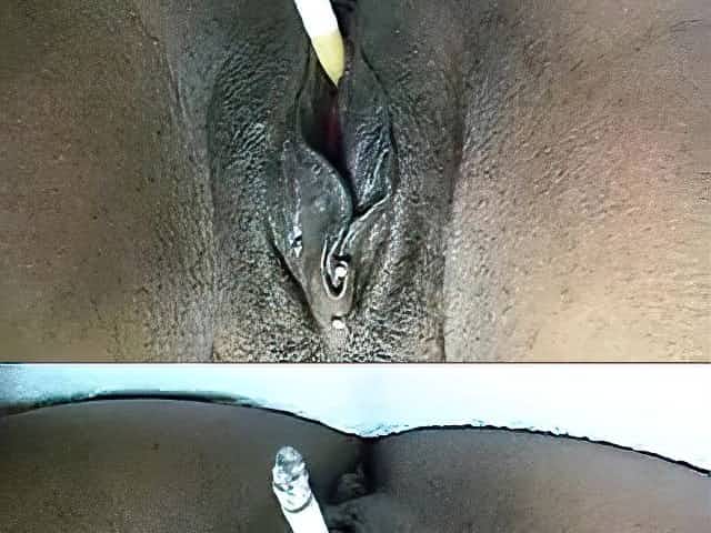 Large darksome shiny juicy crack smokin' a cigarette on cam