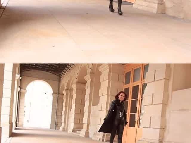 "Cooling down in my black spandex catsuit"