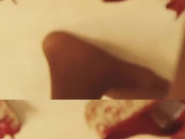 dangling shoe black stockings face shot