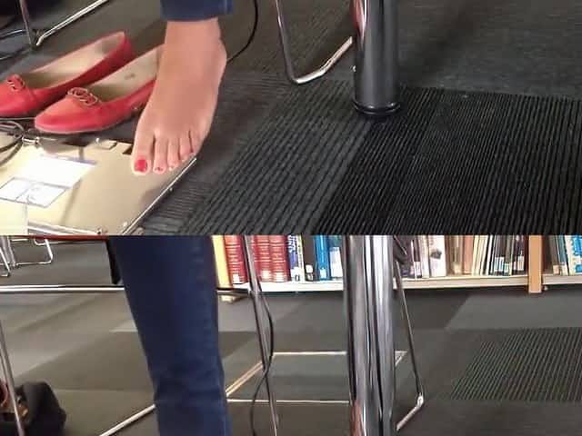 Hot girl shoeplay in flats library
