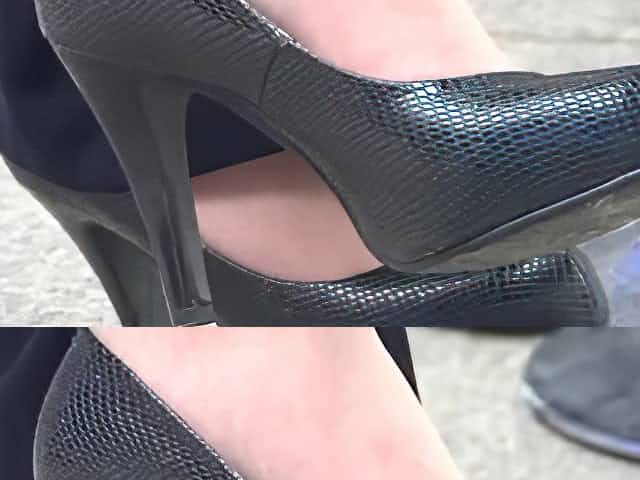 Candid Asian Black Pumps and Nylons Late Shoeplay feet