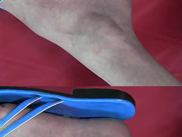 knee-high slippers dangling flat shoes chubby girl feet with nail polish