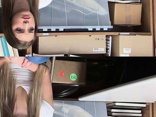 Sexy shoplifter gets banged in the office store