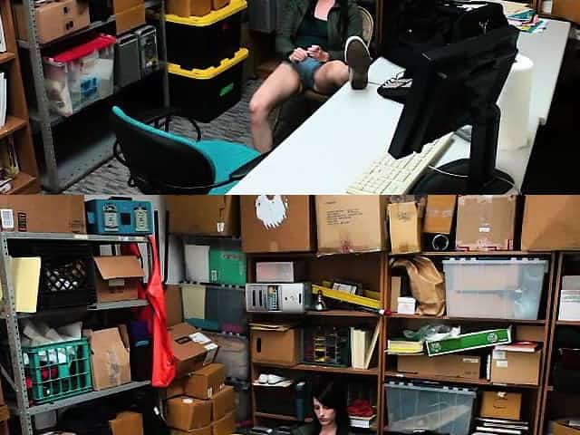 Shoplifter chick caught and brought into the back room