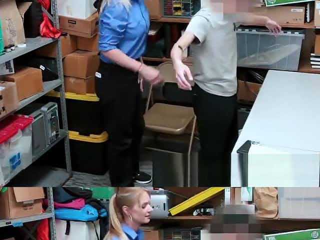 Spy cams record a security guard fucking a teen shoplifter
