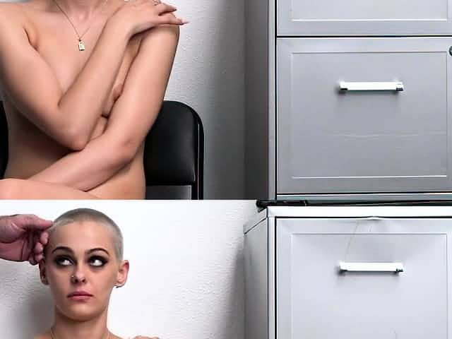 Hot shoplifter blondes get their pussy slammed on the desk.