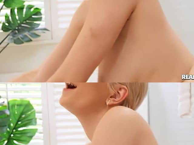 Short-haired blonde expects massage but receives big dick